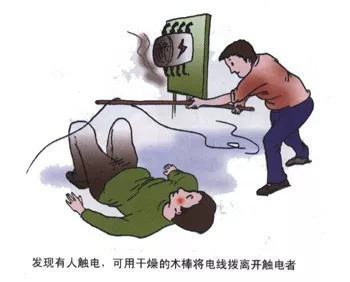 3当电线搭在触电者身上或被压在身下时,也可用干燥的衣服、手套、绳索、木板、木棒等绝缘物为工具,拉开提高或挑开电线,使触电者脱离电源。切不可直接去拉触电者。