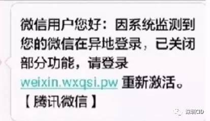 #最新诈骗手法#【收到微信帐号异地登录短信时要警惕!】近期很多人收到这样的短信:“微信用户您好:因系统监测到您的已微信在异地登录,并已关闭部分功能,请登录weixin.wxqsi.pw重新激活。【腾讯微信】”。厅哥提醒:这其实是一个由伪基站发来的诈骗短信,一旦打开链接,很有可能被诱导输入微信帐号、微信密码、支付密码、验证码等,后果不堪设想……