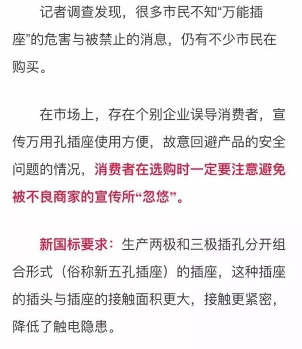 因为这样,由于企业商家的继续生产销售,70%的消费者并不知道国家已禁止“万用插座”!还继续使用!已经有人中招了: