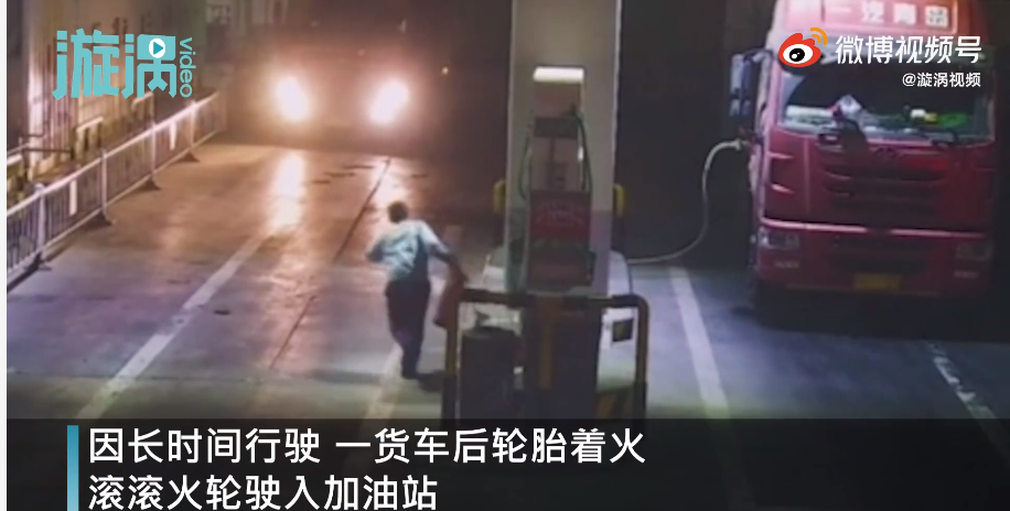 3月29日,甘肃酒泉一货车因长时间行驶,后轮胎着火,滚滚火轮驶入加油站。此时,着火点距离加液区不足10米,随时都有可能引爆整个加油站。发现此情况,工作人员立刻禁止其他车辆进入加油站,并迅速用灭火器灭火,整个过程用时60秒。