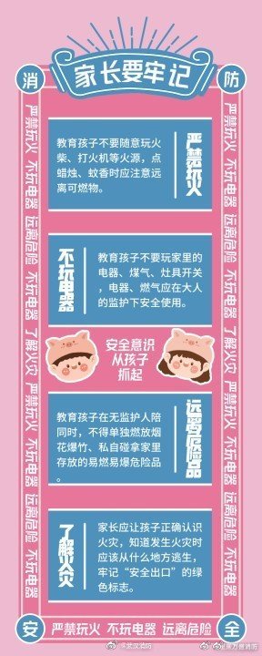 关于儿童玩火引起的火灾事故并不少见,小小火源随时可能危及孩子安全;养成良好习惯可能会避免更多的悲剧。从小教育孩子提高消防安全意识,是每个父母的责任。