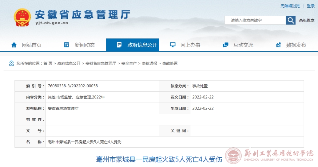 据安徽省应急管理厅官网消息,2月22日6时50分许,亳州市蒙城县乐土镇建明村一民房起火,经救援明火已被扑灭。此次火灾,造成4人死亡,4人受伤,伤者被紧急送往医院救治,现生命体征平稳,伤者救治和善后工作正在全面展开,起火原因正在进一步调查中。