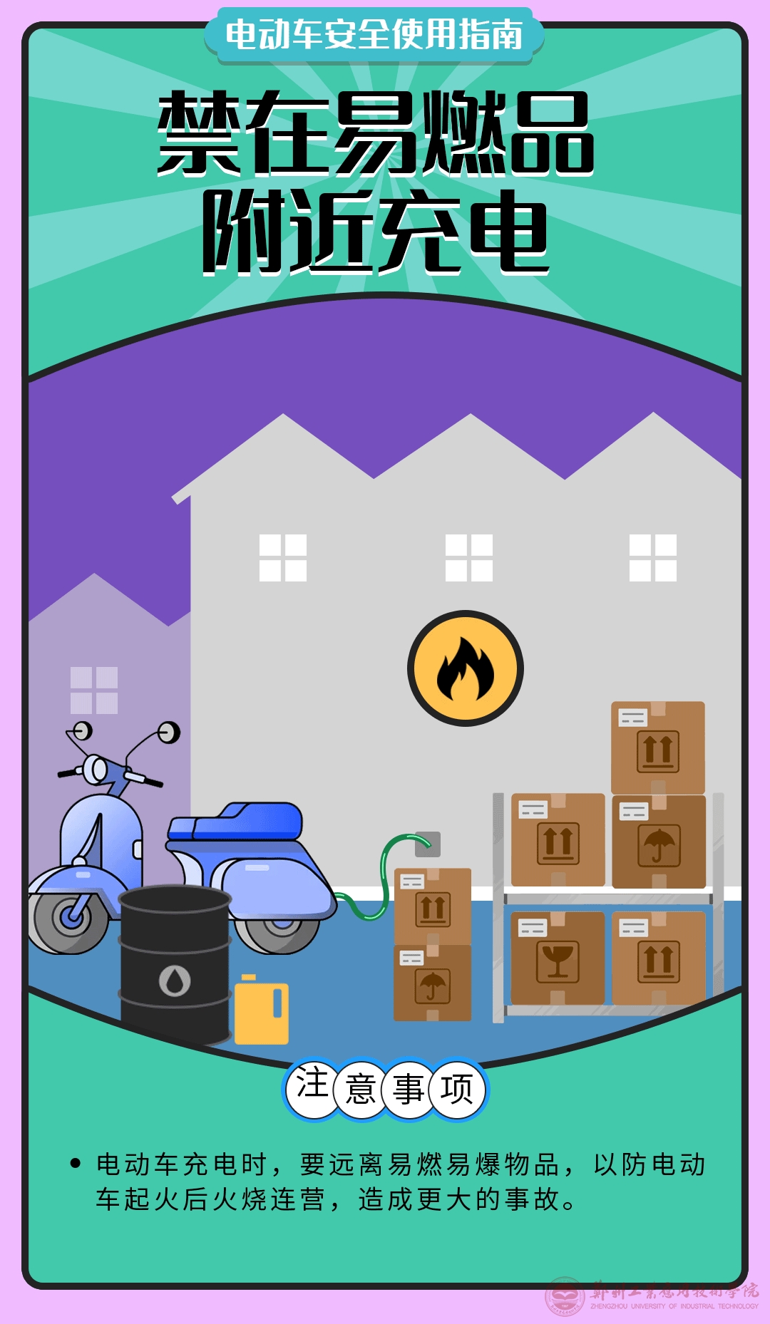 电动车电池受到损伤或过度充电可能引发自燃,且由于车上不少部件是由塑料、橡胶和聚氨酯等易燃材料制成,一旦起火后蔓延速度快、扑灭难度大。电动车起火30秒,即可产生大量有毒气体,周边人员吸入容易引起昏迷和窒息死亡。为深刻汲取南京“2·23”火灾事故教训,及时消除火灾隐患,确保校园消防安全,特作如下提示: