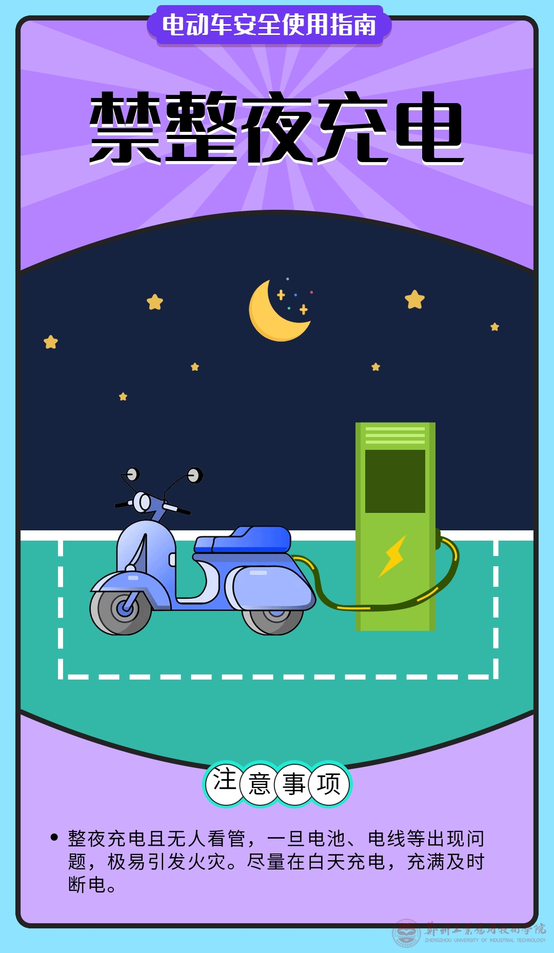 三、严禁整夜或长时间充电。整夜充电且无人看管,一旦电池、电线等出现问题,极易引发火灾。应尽量在白天充电,充满及时断电。
