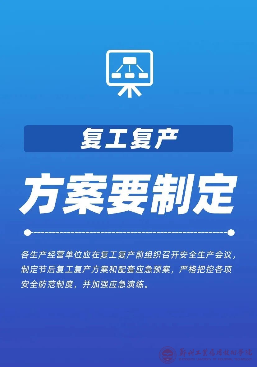 根据复工复产进度安排,提前开展人员、物资等工作准备,特别要强化关键人员到岗、外包队伍确认、上下游企业协调等工作,存在突出问题及时向相关行业主管部门报告,确保满足复工复产要求。