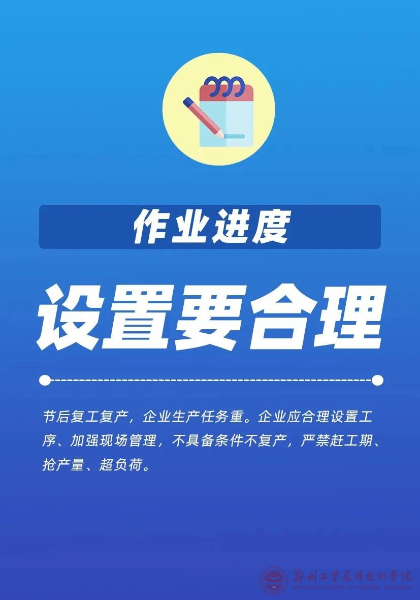 节后复工,企业生产任务重,可能出现赶工期、抢进度的情况。生产人员和设备设施超负荷运转,可能造成现场组织混乱、人员超强度作业、正常工序时间被压缩,增加安全风险。
