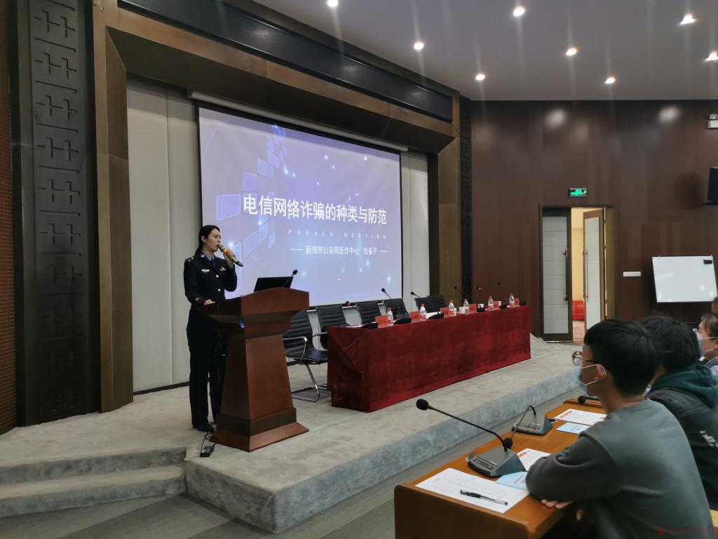 市公安局反诈中心张春子警官系统的讲解了网络电信诈骗的类型,详细剖析了各类电信诈骗的手段和方式,有针对性的提出了防范措施,并分析了网络电信诈骗案件侦破难度大的原因,告诫师生要增强防范意识,提高自身防范能力,在日常生活中要“养成七个好习惯”,面对可疑信息和转账请求时要做到“五不”两“核实”。中原证券刘金宝经理对防范金融投资理财类诈骗进行了讲解,并普及了相关金融知识。
