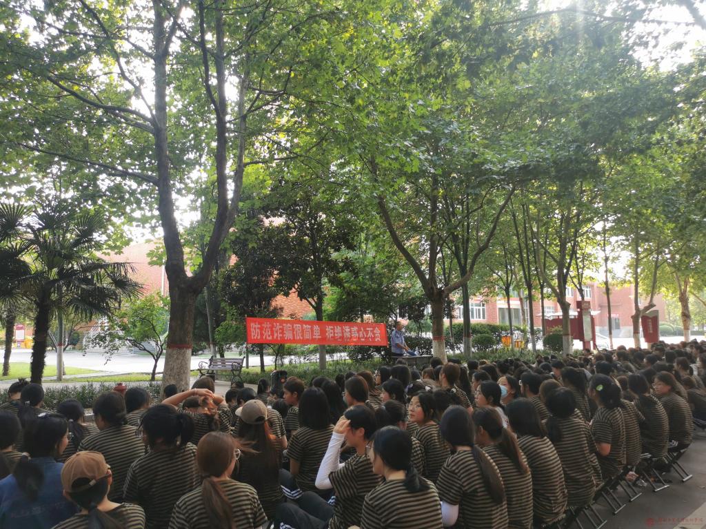 为增强新生防骗意识,维护学生财产安全,9月13日下午,学校总务处邀请新郑市公安局新村派出所郝永刚警官到西校区为大一新生开展防诈骗知识讲座,讲座在军训现场举行,共有1000余名学生参与。