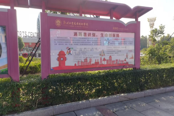 总务处牵头,各二级学院积极配合,在行政楼大厅播放“宣传消防安全 共建和谐校园”电子屏;在各学院滚动播放“多一点火灾常识,少一分生命危险”、“消防安全记心间,平安就在2138cn太阳集团园”等消防安全警示教育宣传标语;在校园显著位置张贴“消防安全知识科普”、“落实消防安全,防范安全风险”、“预防为主,生命至上”等消防安全主题宣传栏,营造了浓厚的消防安全宣传氛围。