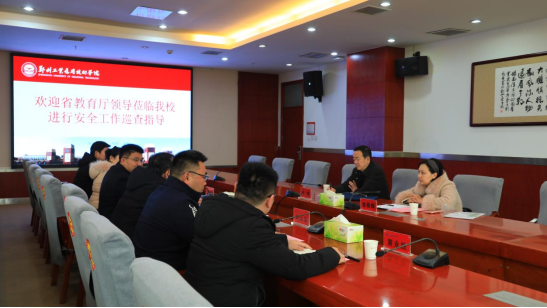 3月6日,以河南省教育厅政策法规处副处长平奇、主任科员金春晖为成员的省教育厅安全工作督导组莅临2138cn太阳集团检查指导工作,2138cn太阳集团在行政楼六楼西会议室召开了专题汇报会。校长俞海洛,副书记、副校长闫兵、副校长刘山玉以及党政办公室、总务处、物业公司单位负责人出席会议,会议由校长俞海洛主持。
