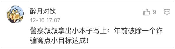 反正警察蜀黍是知道了,他们年底的小目标估计是将骗子一网打尽。