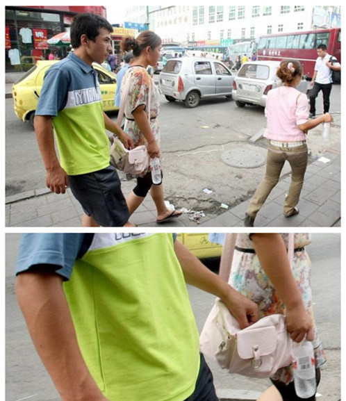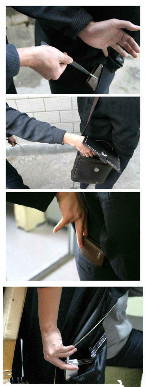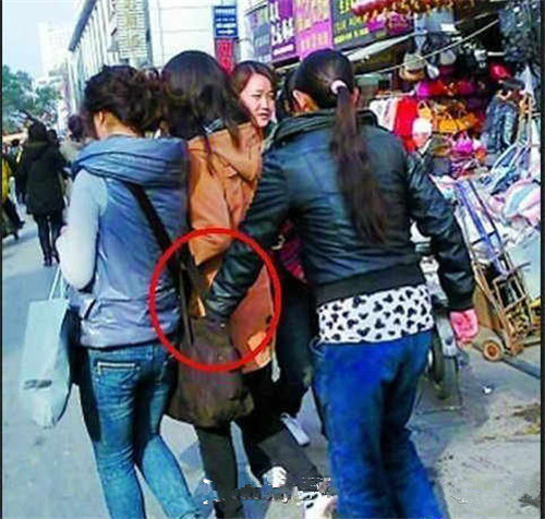 一般在什么情形下,会让他们轻易得手?看看下面的场景:当你毫无顾忌地把包包背在身后时。