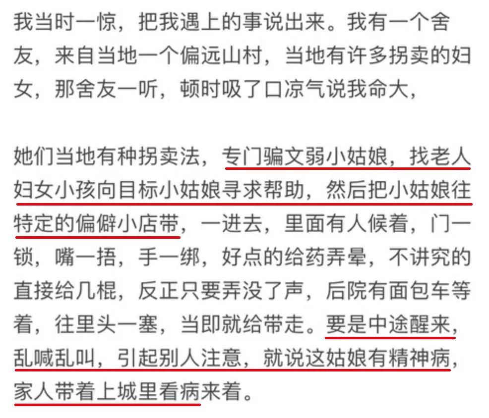 舍友听完答主的经历后,也分享了她们当地的一种拐卖法,真的让人不寒而栗!!!