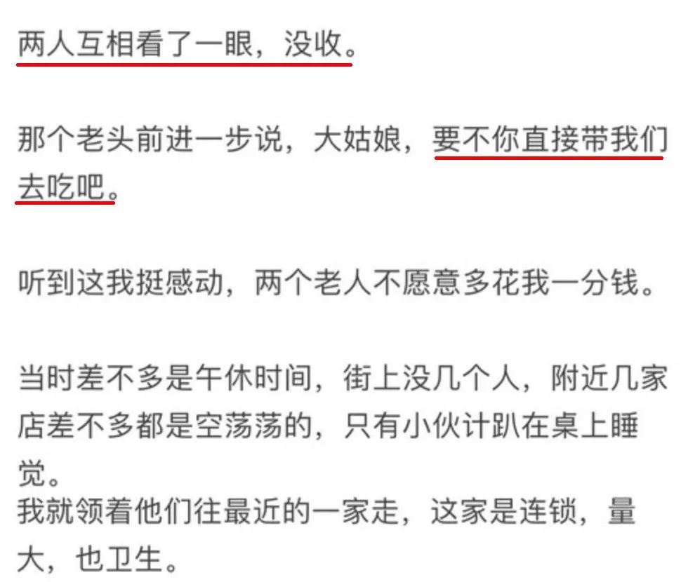 路过一家干净卫生的连锁店,答主正要进去,却被老人死死拽住衣角,示意他去另一家破烂不堪的小面馆。