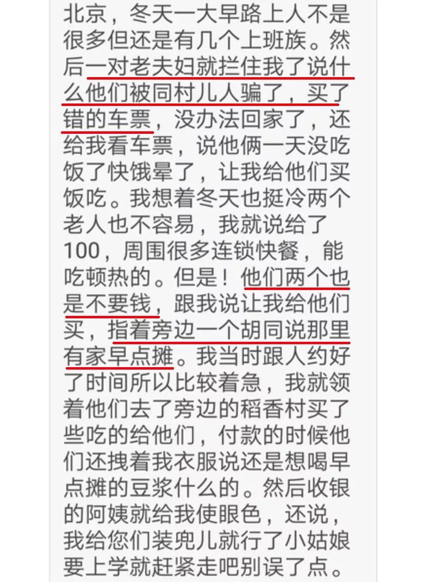 网友小 C 被一对老夫妇拦下,他们说自己买错了车票,要拉小 C 去胡同里的早餐摊买吃的。但其实这里面有很多 BUG:
