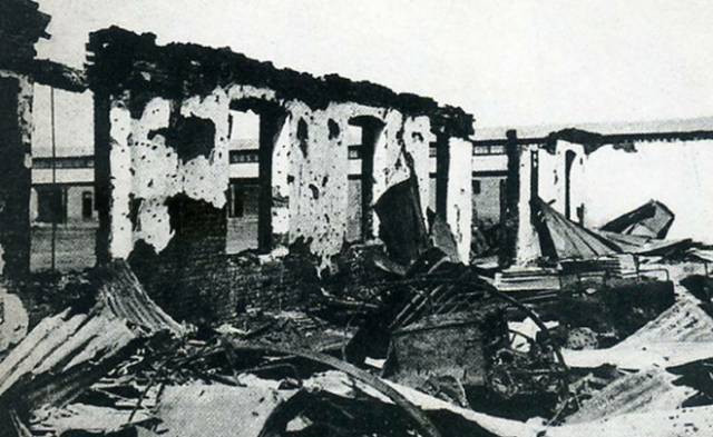 “九一八”事变当晚,被日军炮火摧毁的中国军队营房