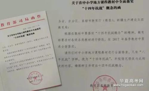 2017年年初,教育部修改全国大中小学历史教材,将“8年抗战”改为“14年抗战”,指从1931年“九一八事变”至1945年8月15日日本天皇宣布无条件投降为止的14年。
