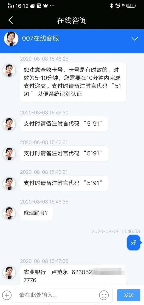 以下与骗子客服的聊天记录