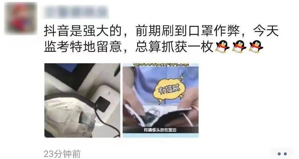 浙江嘉兴一位考生的口罩却发出奇特的光